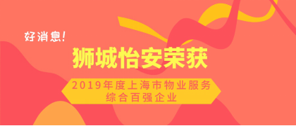 喜讯!狮城怡安荣获“2019年度上海市物业服务综合百强企业”荣誉称号